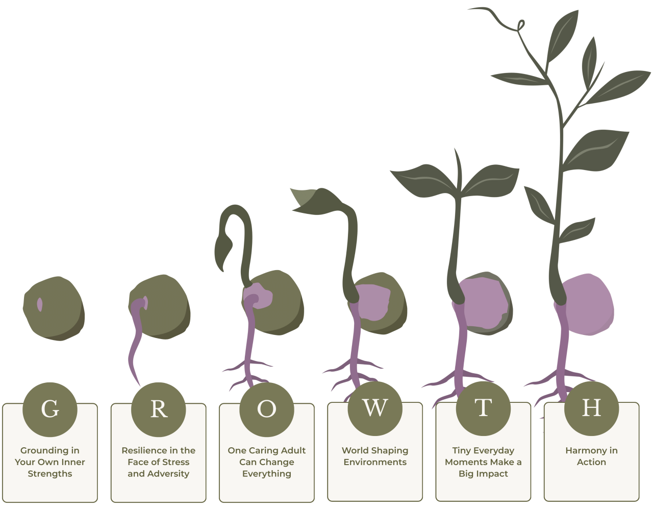 Our workshops turn the G.R.O.W.T.H. Framework into simple practices you can use right away, giving you clarity and confidence as you support children's growth and your own.